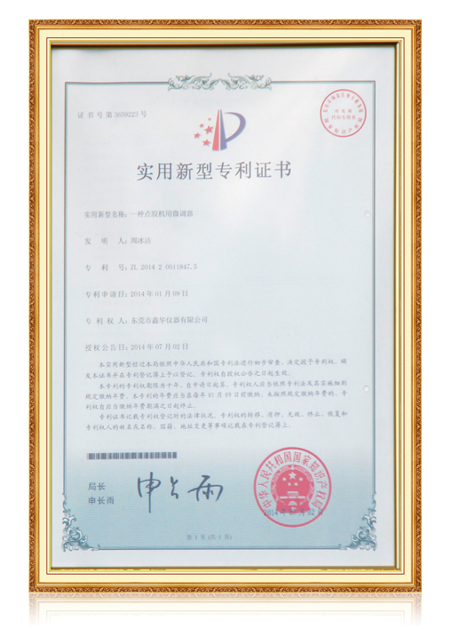點膠機用微調器證書