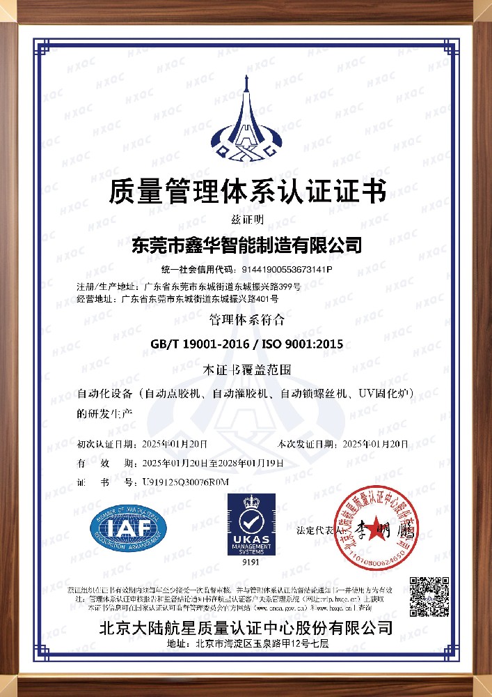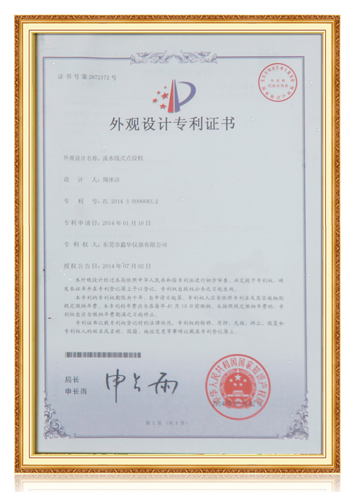 多軸自動點膠機證書