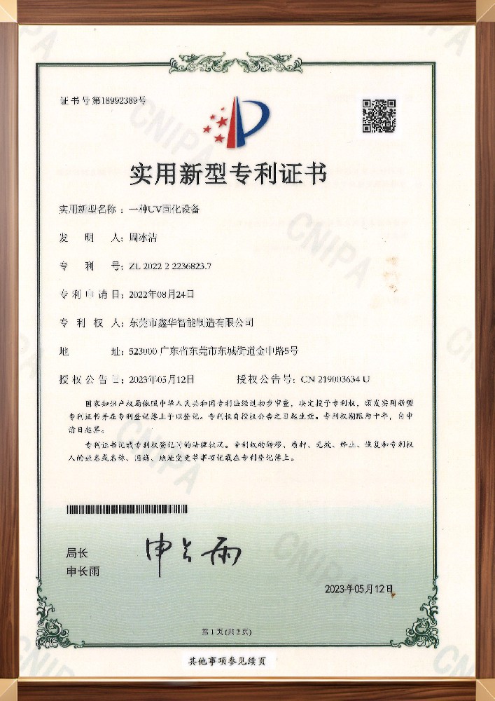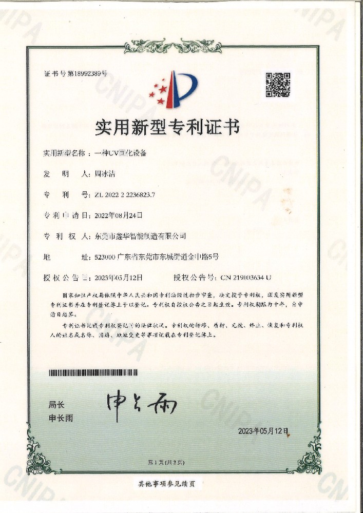 一種UV固化設備證書