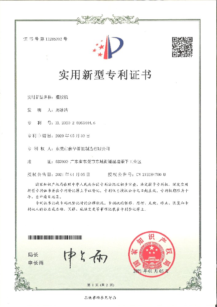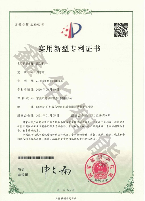 灌膠機專利證書