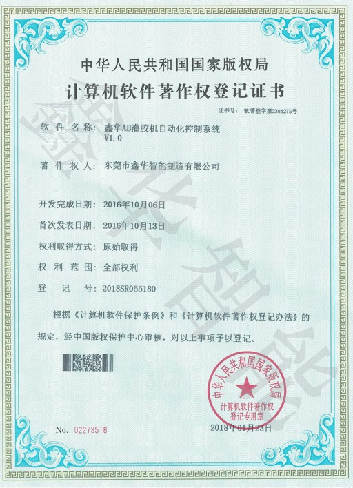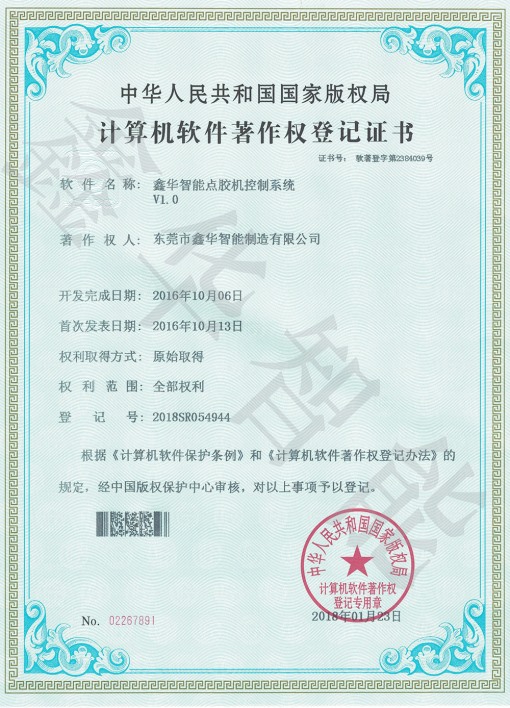 點膠機軟件證書