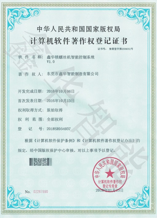鎖螺絲機控制系統著作權